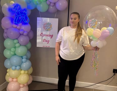 What began as a simple balloon arch for Monster Kidz quickly grew into something much bigger than I ever imagined. Starting small, I worked from my spare bedroom at home, creating designs with nothing more than passion and a vision. As word spread and demand grew, I moved into an outbuilding at my grandparents house, where Make It Pop truly began to take shape.