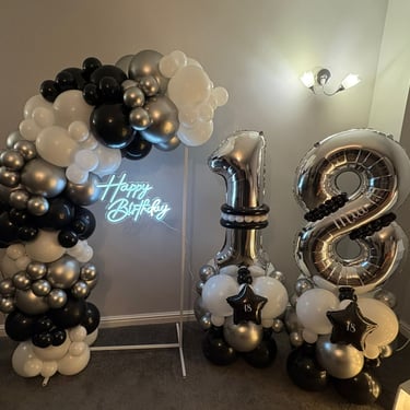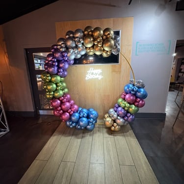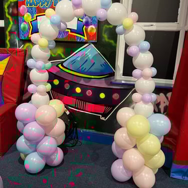 Some examples of our balloon arch's, hoop's, column stacks and occasional balloon events.